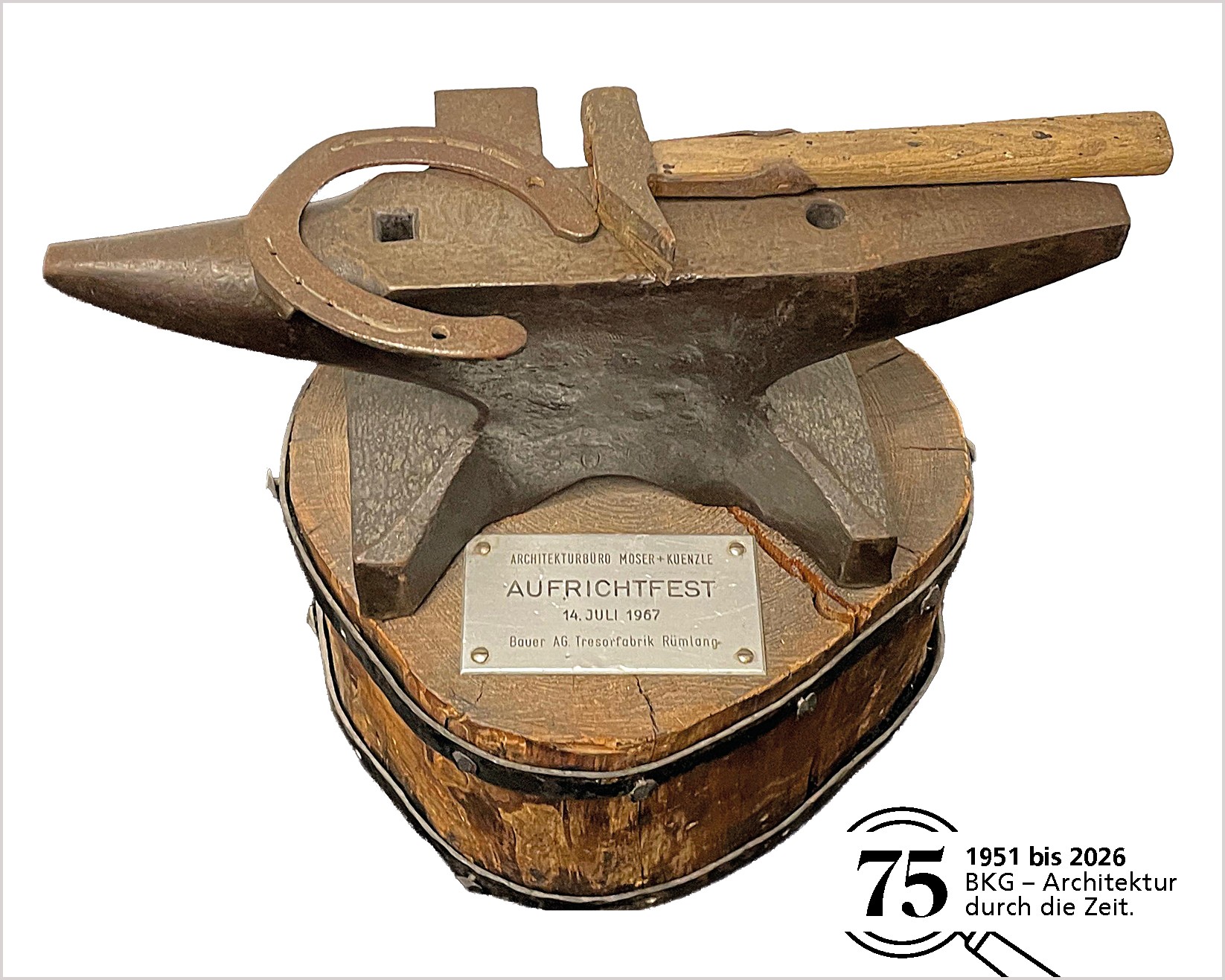 Manchmal beginnt eine neue Phase mit einem handfesten Beweisstück. Ein Amboss, schwer und massiv, steht bis heute im Eingangsbereich. Übergeben wurde er 1967 am Aufrichtefest der Produktionshallen der Bauer AG in Rümlang – im Volksmund besser bekannt als KABA. Die Zusammenarbeit hatte bereits 1963 ihren Anfang genommen. Ein Geschenk als Symbol für Vertrauen, Beständigkeit und industrielle Dimensionen. Zufall? Wohl kaum.